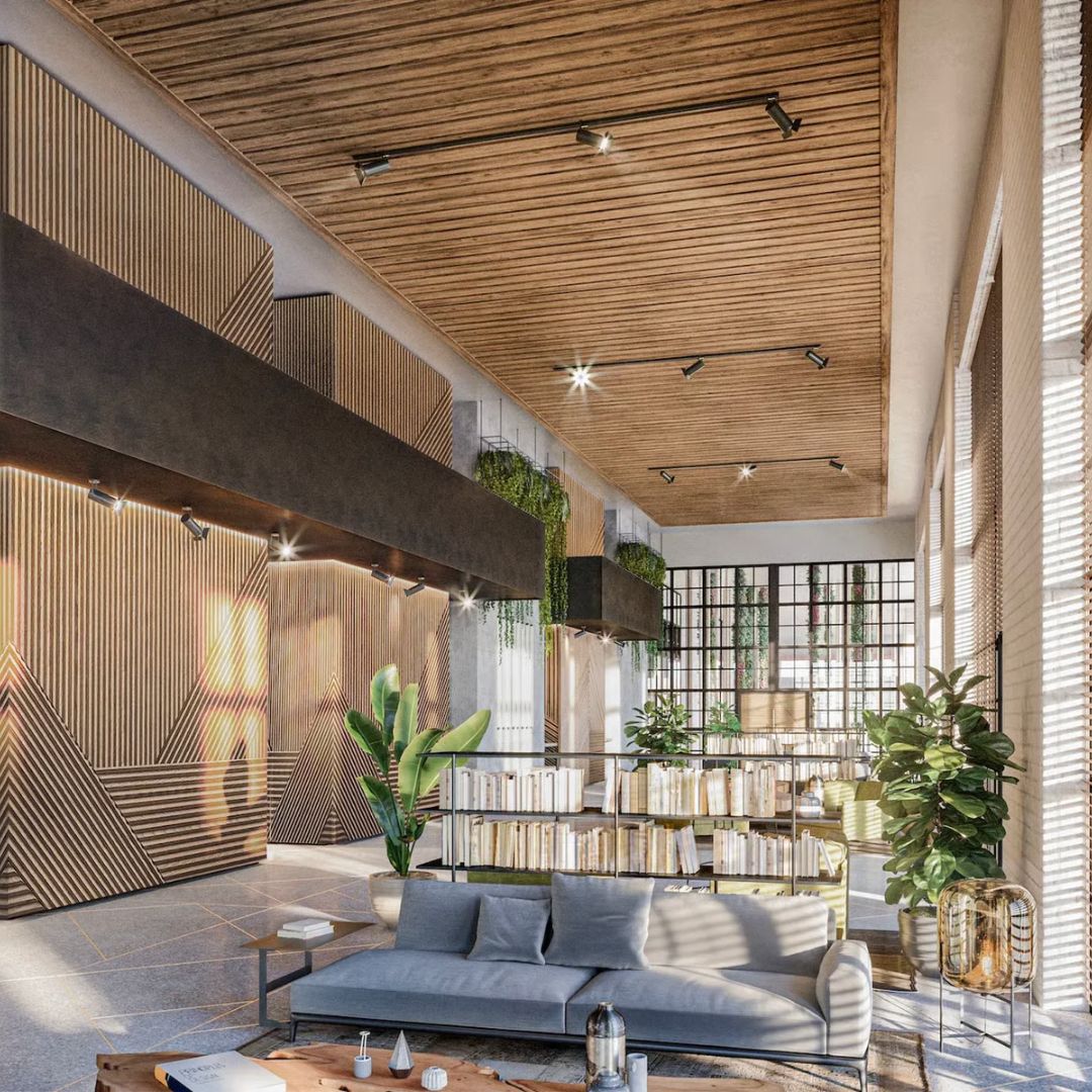 • Lobby de doble altura con ventanales de piso a techo